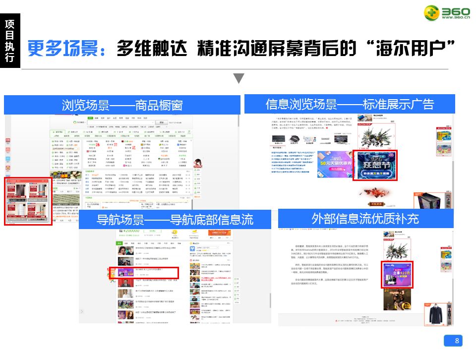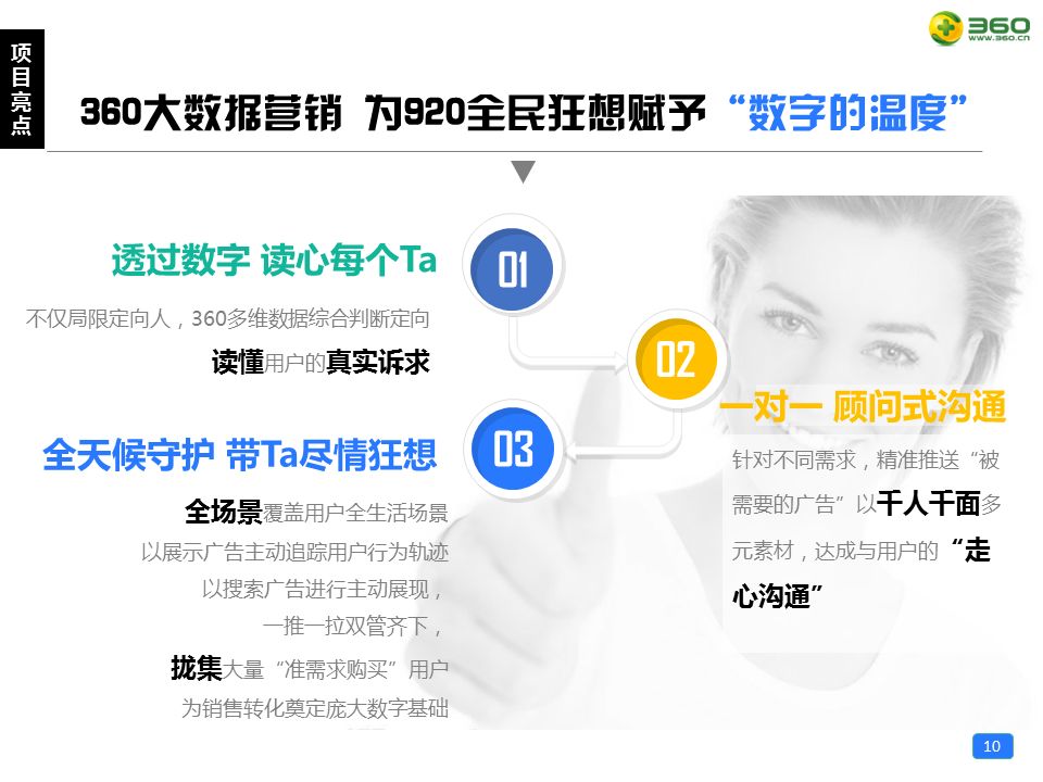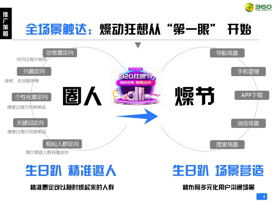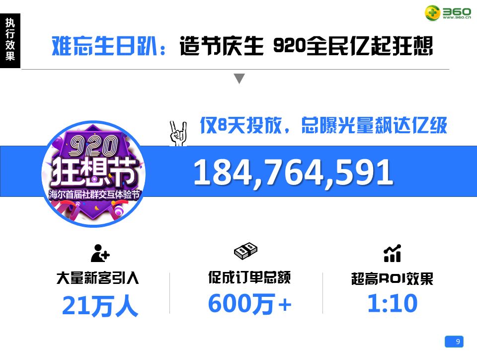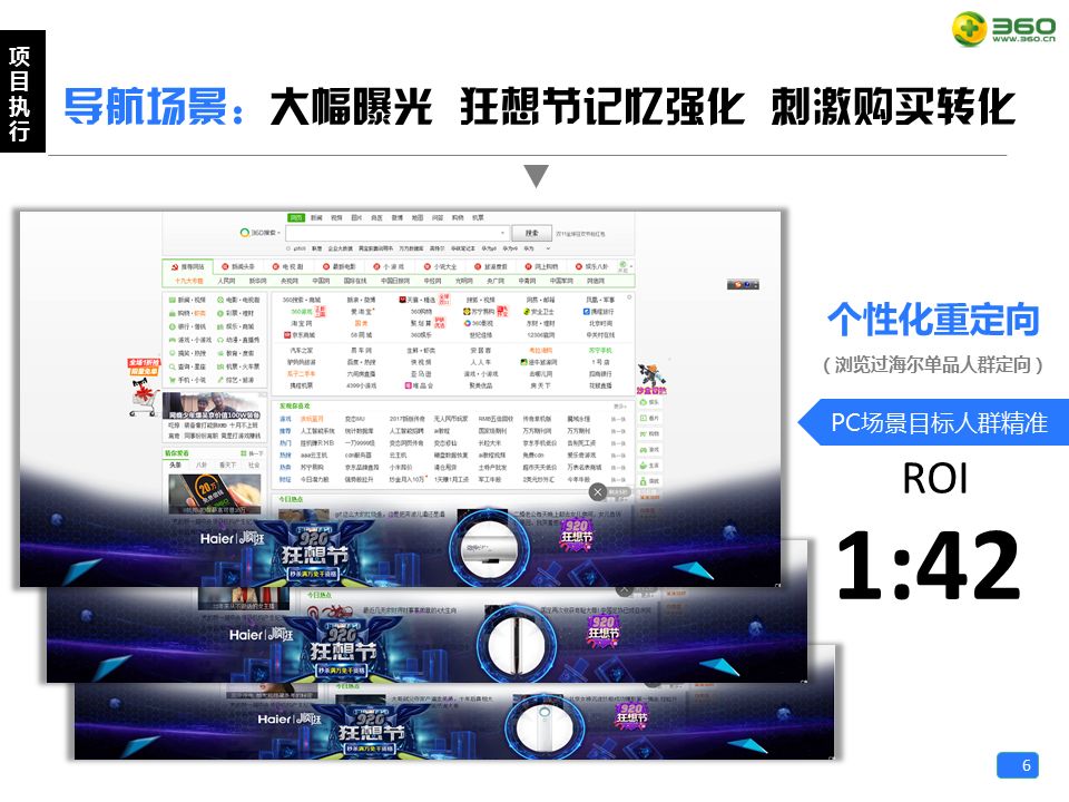 最后,场景化渗透。全场景覆盖用户全生活场景,以展示广告主动追踪用户行为轨迹,以搜索广告进行主动展现,一推一拉双管齐下,在导航开屏、手机助手开屏、信息流广告、浏览器今日首发、品牌直达等多种形式的曝光下,拢集大量“准需求购买”用户。8天总曝光量飙达近2亿,独立访客21万+,贡献920活动总订单额的15%。